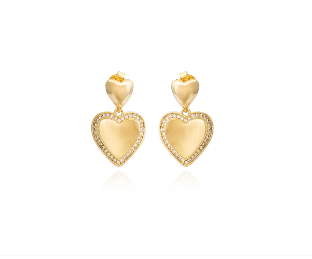 Brinco Coração Médio Escovado com Zircônias Folheado Ouro 18K