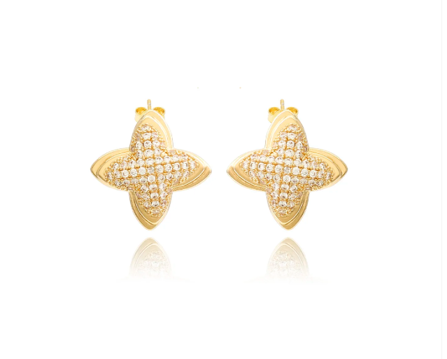 Brinco Flor Cravejada Médio com Zircônias Folheado a Ouro 18k