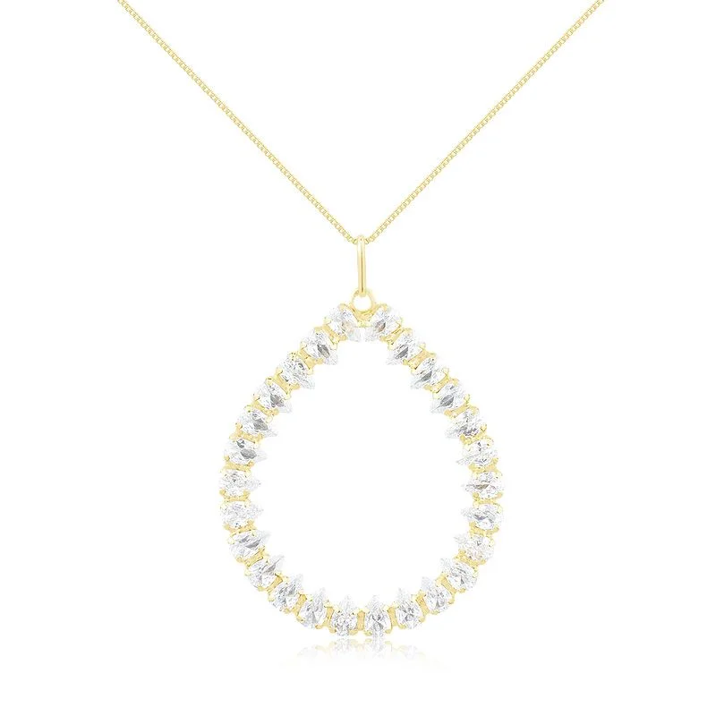 Esse colar é MA-RA-VI-LHO-SO! Para você que ama uma composição cheia de brilho e super na moda. Com design de gota, composta em gotinhas de zircônia, mais corrente veneziana fina, tudo folheado em ouro 18k. Um acessório chave para uma composição completa e estilosa. O banho em ouro proporciona muito brilho e glamour à peça.