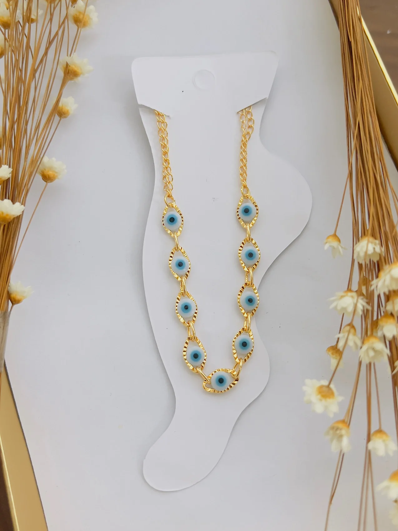Tornozeleira Olho de Grego!. Um modelo maravilhoso, que traz consigo um olhar místico, romântico e delicado. Para você mulher misteriosa, que ama usar amuletos e mostrar suas crenças através de acessórios!